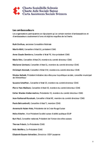 Les ambassadeurs Les organisations participantes se réjouissent qu’un certain nombre d’ambassadrices et d’ambassadeurs soutiennent d’ores et déjà les requêtes de la Charte. Ruth Dreifuss, ancienne Conseillère fédérale Martin Klöti, Conseiller d‘état