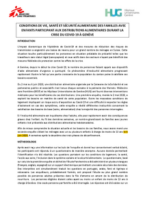 CONDITIONS DE VIE, SANTÉ ET SÉCURITÉ ALIMENTAIRE DES FAMILLES AVEC ENFANTS PARTICIPANT AUX DISTRIBUTIONS ALIMENTAIRES DURANT LA CRISE DU COVID-19 À GENÈVE INTRODUCTION L’impact économique de l’épidémie de Covid-19 et des mesures de réduction des…