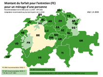 Montant du forfait pour l’entretien (FE) pour un ménage d'une personne Recommandation de la CDAS pour 1.1.2025 : CHF 1061 Adaptation recommandé au plus tard a partir der 1.1.2026 BS1.25 JU 12 BL1.25 7.25 AG SO NE BE VD SH1.25 état : 1.5.2025 …