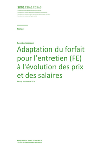 Notice Renchérissement Adaptation du forfait pour l’entretien (FE) à l'évolution des prix et des salaires Berne, novembre 2024 Situation de départ Le forfait pour l’entretien (FE) selon les normes CSIAS est adapté depuis 2009 à l’évolution des…