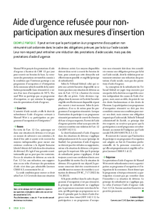 Aide d’urgence refusée pour nonparticipation aux mesures d’insertion EXEMPLE PRATIQUE Il peut arriver que la participation à un programme d’occupation non rémunéré soit ordonnée dans le cadre des obligations prévues par la loi sur l’aide sociale.…