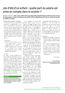 Job d’été d’un enfant : quelle part du salaire est prise en compte dans le soutien ? EXEMPLE PRATIQUE Sara*, 15 ans, prévoit de faire un voyage qu'elle souhaite financer en faisant un job de vacances de trois semaines. Le revenu provenant de cette…