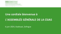 Une cordiale bienvenue à L’ASSEMBLÉE GÉNÉRALE DE LA CSIAS 6 juin 2024, Stadtsaal, Zofingue Ouverture de l’Assemblée Christoph Eymann Président de la CSIAS 2 Mots de bienvenue de la ville de Zofingue et du canton d'Argovie Christiane Guyer Maire…