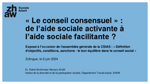 « Le conseil consensuel » : de l’aide sociale activante à l’aide sociale facilitante ? Exposé à l’occasion de l'assemblée générale de la CSIAS : « Définition d'objectifs, conditions, sanctions - le bon équilibre dans le conseil social » Zofingue, le…
