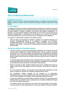 Fiche 3 Choix et débuts professionnels L’essentiel en 3 secondes Aiguiller les jeunes vers les mesures appropriées grâce à un pilotage central des offres et assurer un suivi sur la durée. Donner la priorité à la formation, aussi pour les jeunes à
