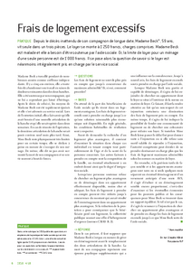 Frais de logement excessifs Pratique Depuis le décès inattendu de son compagnon de longue date, Madame Beck*, 59 ans, vit seule dans un trois pièces. Le loyer se monte à 1’250 francs, charges comprises. Madame Beck est malade et elle a besoin