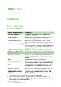 Instrument pratique Budget CSIAS élargi Août 2024, actualisé en mars 2026 Dépenses pour besoins de base* Commentaire Forfait pour l’entretien (C.3.) Sur la base de l’ensemble de l’unité d’assistance de la personne non bénéficiaire. Frais de…