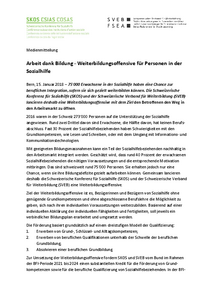 Medienmitteilung Arbeit dank Bildung – Weiterbildungsoffensive für Personen in der Sozialhilfe Bern, 15. Januar 2018 – 75'000 Erwachsene in der Sozialhilfe haben eine Chance zur beruflichen Integration, sofern sie sich gezielt weiterbilden können.…
