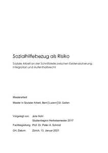 Sozialhilfebezug als Risiko Soziale Arbeit an der Schnittstelle zwischen Existenzsicherung, Integration und Aufenthaltsrecht Masterarbeit Master in Sozialer Arbeit, Bern│Luzern│St. Gallen Vorgelegt von: Julia Hohl Studienbeginn Herbstsemester…