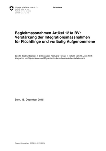 Der Bundesrat Begleitmassnahmen Artikel 121a BV: Verstärkung der Integrationsmassnahmen für Flüchtlinge und vorläufig Aufgenommene Bericht des Bundesrates in Erfüllung des Postulats Tornare (14.3523) vom 19. Juni 2014: Integration von Migrantinnen…