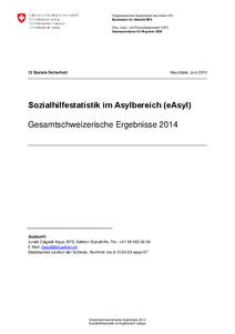 Eidgenössisches Departement des Innern EDI Bundesamt für Statistik BFS Eidg. Justiz- und Polizeidepartement EJPD Staatssekretariat für Migration SEM 13 Soziale Sicherheit Neuchâtel, Juni 2015 Sozialhilfestatistik im Asylbereich (eAsyl)…