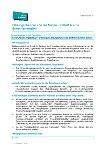 Faktenblatt 1 Bildungschancen von der frühen Kindheit bis ins Erwachsenenalter Das Wichtigste in drei Sekunden Kontinuität der Angebote zur Förderung der Bildungschancen ab der frühen Kindheit sichern Worum geht es? Bildung schützt vor Armut. Im…