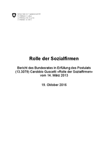 Rolle der Sozialfirmen Bericht des Bundesrates in Erfüllung des Postulats (13.3079) Carobbio Guscetti «Rolle der Sozialfirmen» vom 14. März 2013 19. Oktober 2016 Zusammenfassung Der Bundesrat legt diesen Bericht in Erfüllung des Postulats…